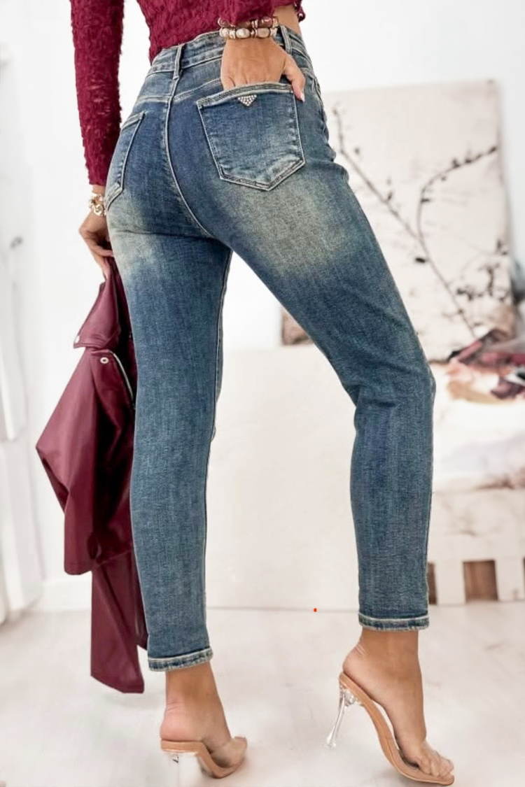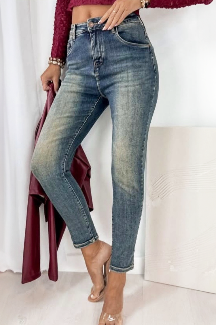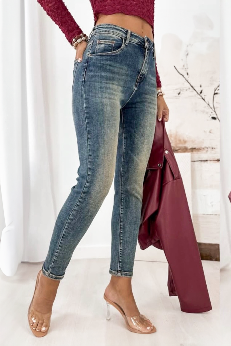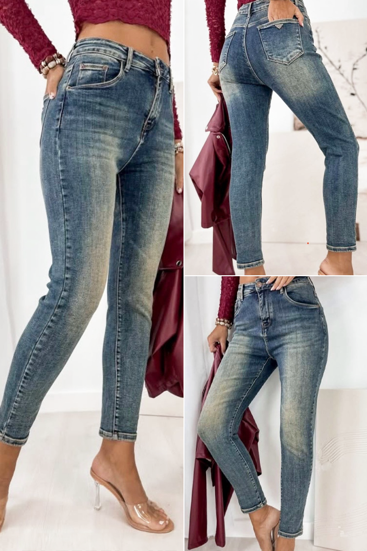 - Model ima visoki, elastični struk i precizan kroj koji naglašava figuru.