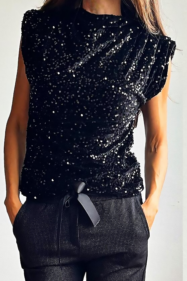 - Top ima spektakularan dizajn i šljokice po cijeloj dužini.
