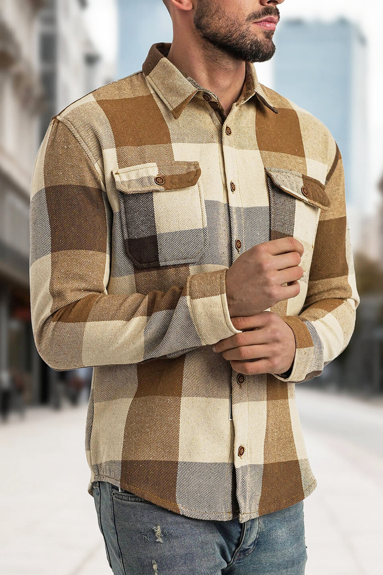 - Elegantna muška košulja s kariranim uzorkom, prikladna za razne modne kombinacije.