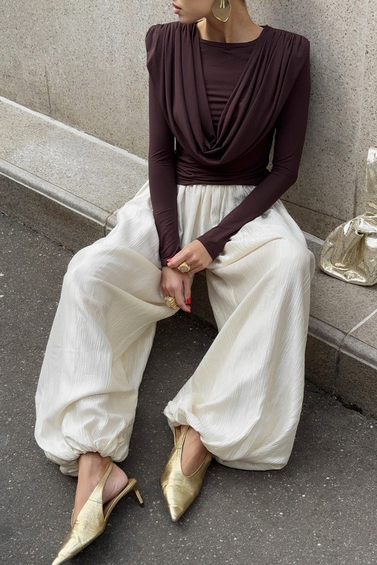 - Bluza ima duge rukave, spektakularan kroj i atraktivan set oko dekoltea.