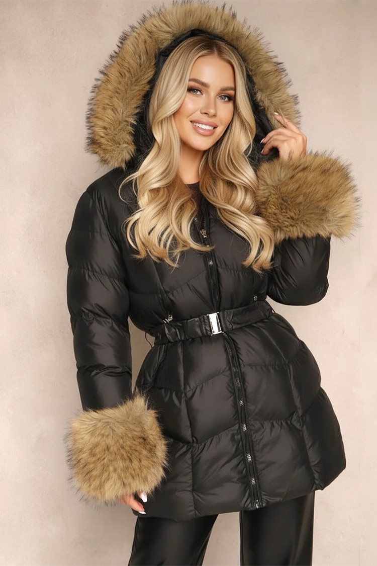 - Model ima široki kroj i praktičnu kapuljaču s perjem, koja je prisutna i na kraju rukava.