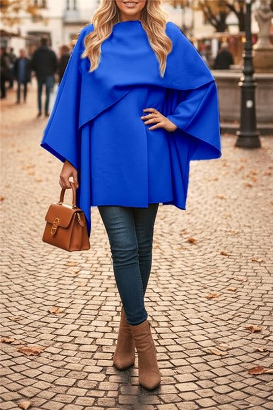 - Model ima asimetrični kroj, široke spektakularne rukave i moka boju.