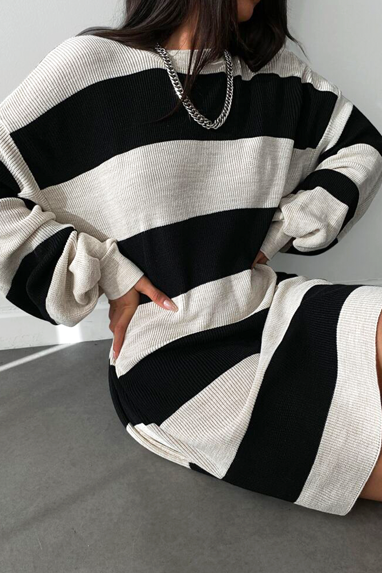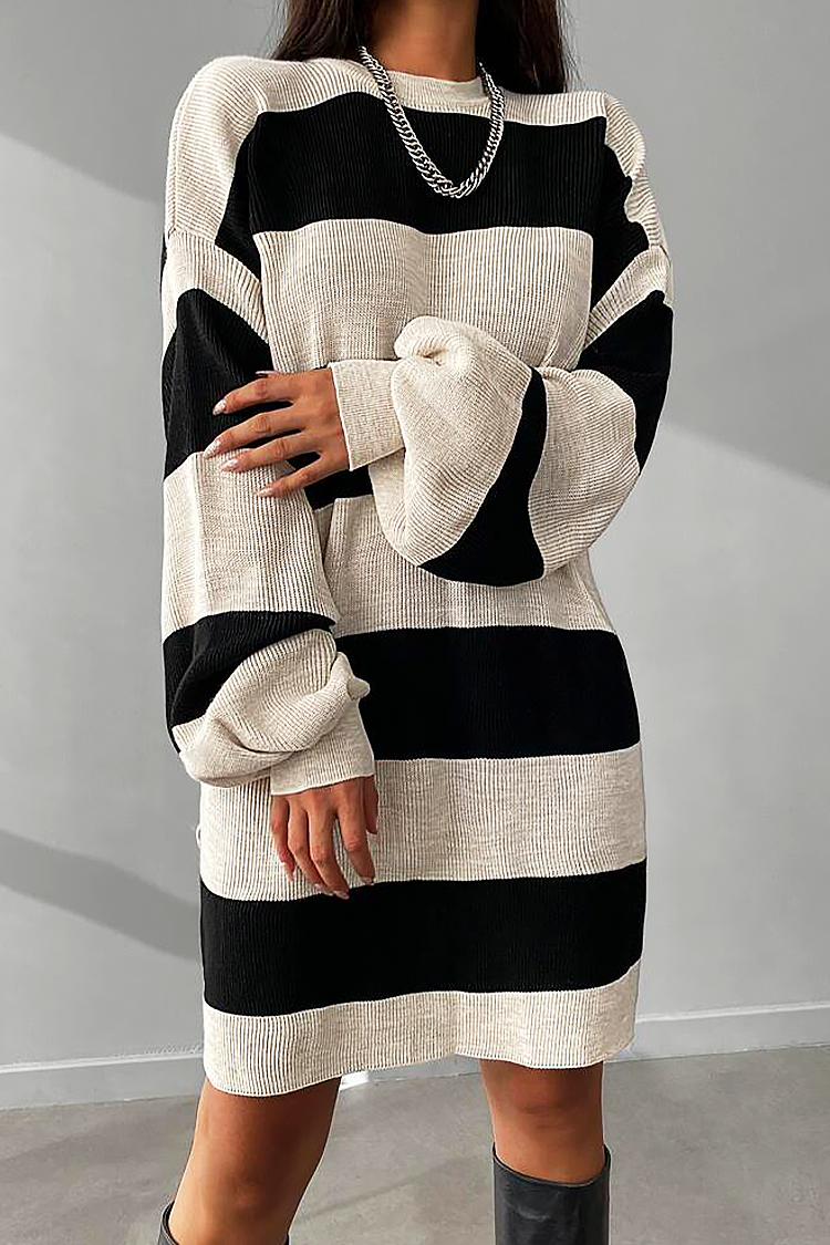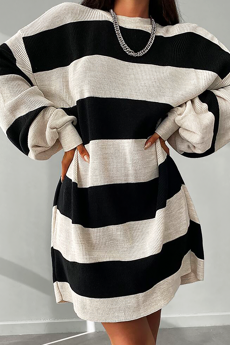 - Za moderan izgled odaberite ovu kratku haljinu s prugastim uzorkom.