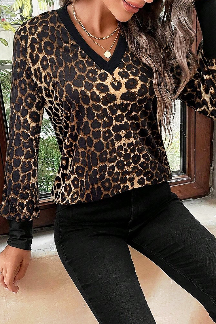 - Elegantni ženski pulover s leopard printom, prikladan za svakodnevni i trendi izgled.