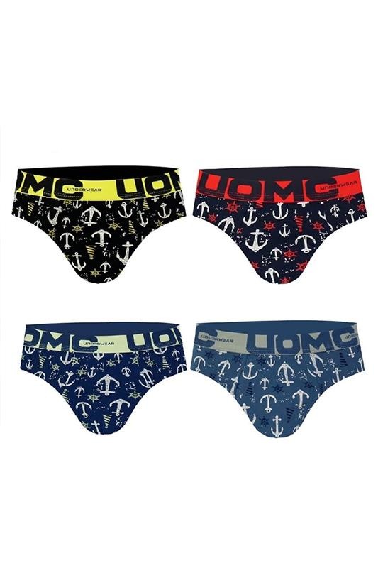 - Set od četiri muške gaćice s uzorkom sidra i elastičnom trakom s printom, izrađene od pamuka, prozračnog materijala.