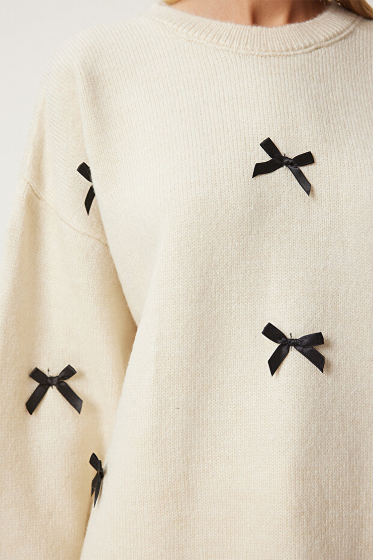 - Model ima klasičan oversized kroj, okrugli izrez i vrpce po cijeloj duljini.