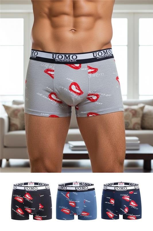 - Set od četiri muške bokserice osnovnog dizajna s elastičnim pojasom i natpisom, izrađene od pamuka, prozračnog materijala.