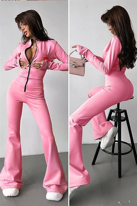 - Seksi kombinezon s jednobojnim uzorkom i spektakularnim dekolteom, pogodan za svakodnevno nošenje i svečane izglede.