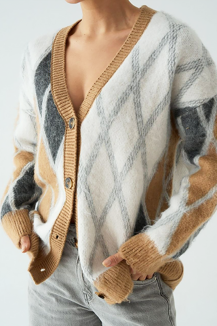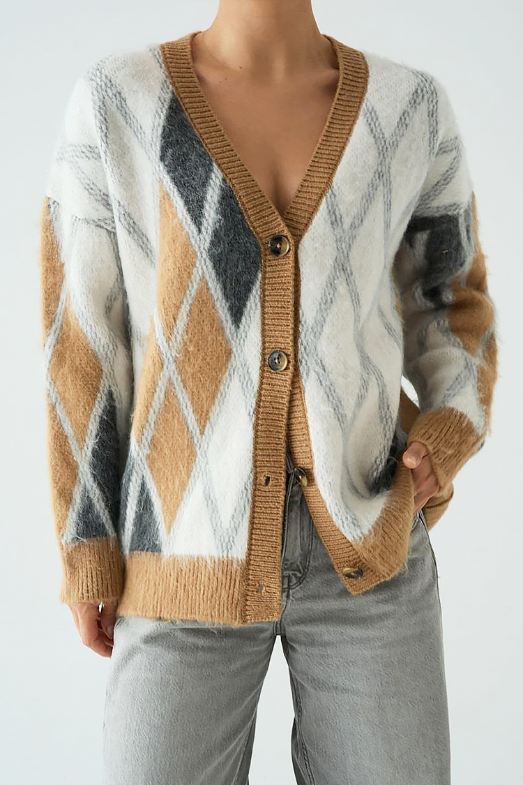 - Mekan i topao ženski kardigan predimenzioniranog kroja i udobnog dizajna, prikladan za svakodnevni život.