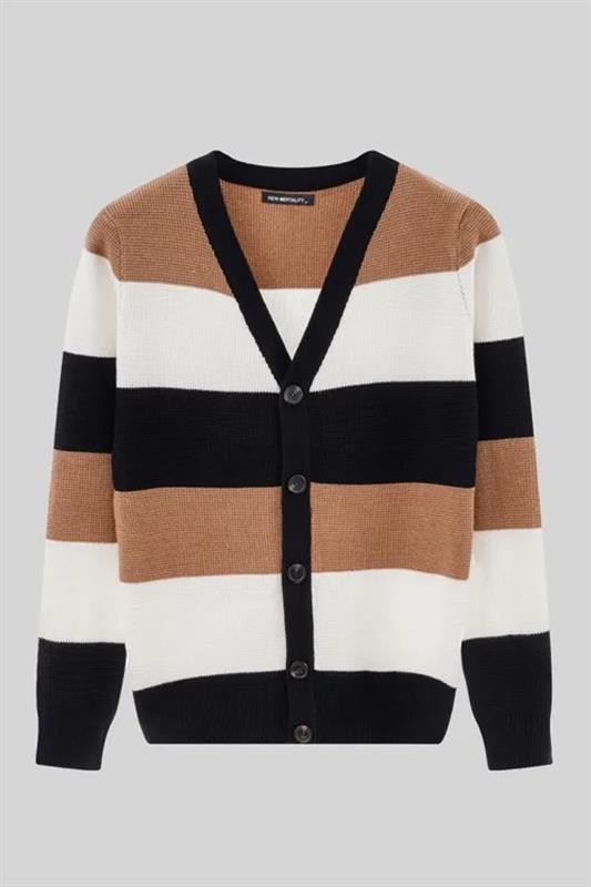 - Praktični muški kardigan s gumbima i prugastim uzorkom, prikladan za svakodnevne trendi izglede.