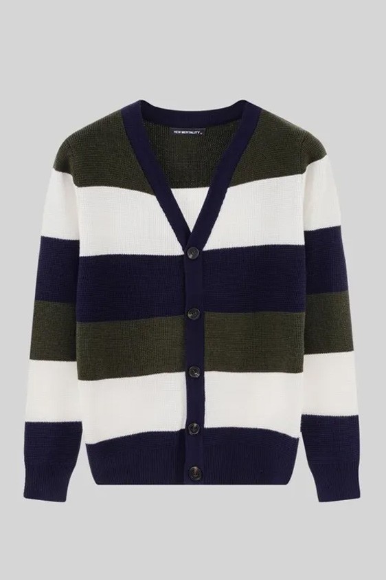 - Praktični muški kardigan s gumbima i prugastim uzorkom, prikladan za svakodnevne trendi izglede.
