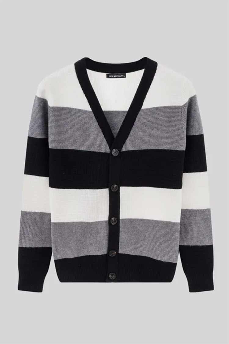 - Praktični muški kardigan s gumbima i prugastim uzorkom, prikladan za svakodnevne trendi izglede.