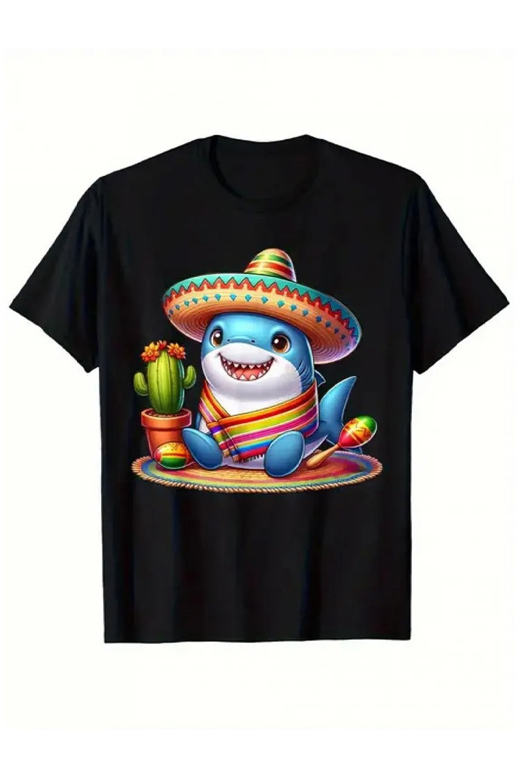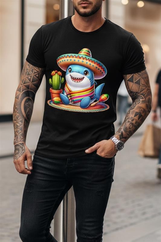 - Praktična muška majica udobnog kroja s printom morskog psa, prikladna za svakodnevni život, šetnju ili kao dodatak vašem sportskom izgledu.
