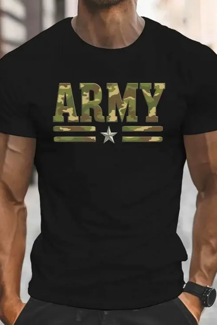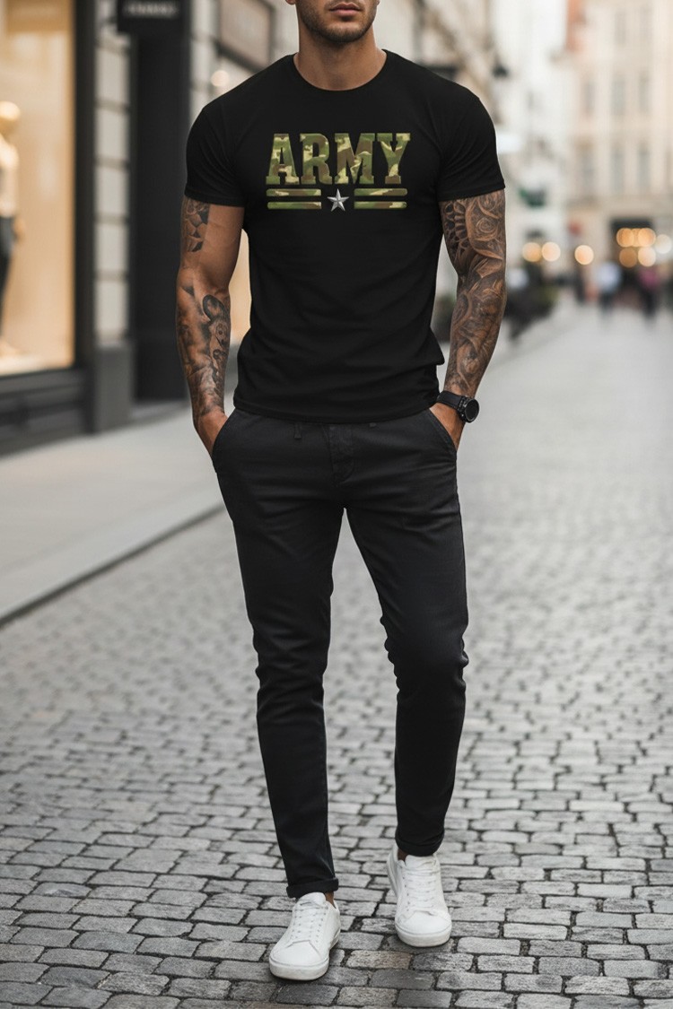 - Praktična muška majica s udobnim krojem i maskirnim printom, prikladna za svakodnevni život, šetnju ili kao dodatak vašem sportskom izgledu.