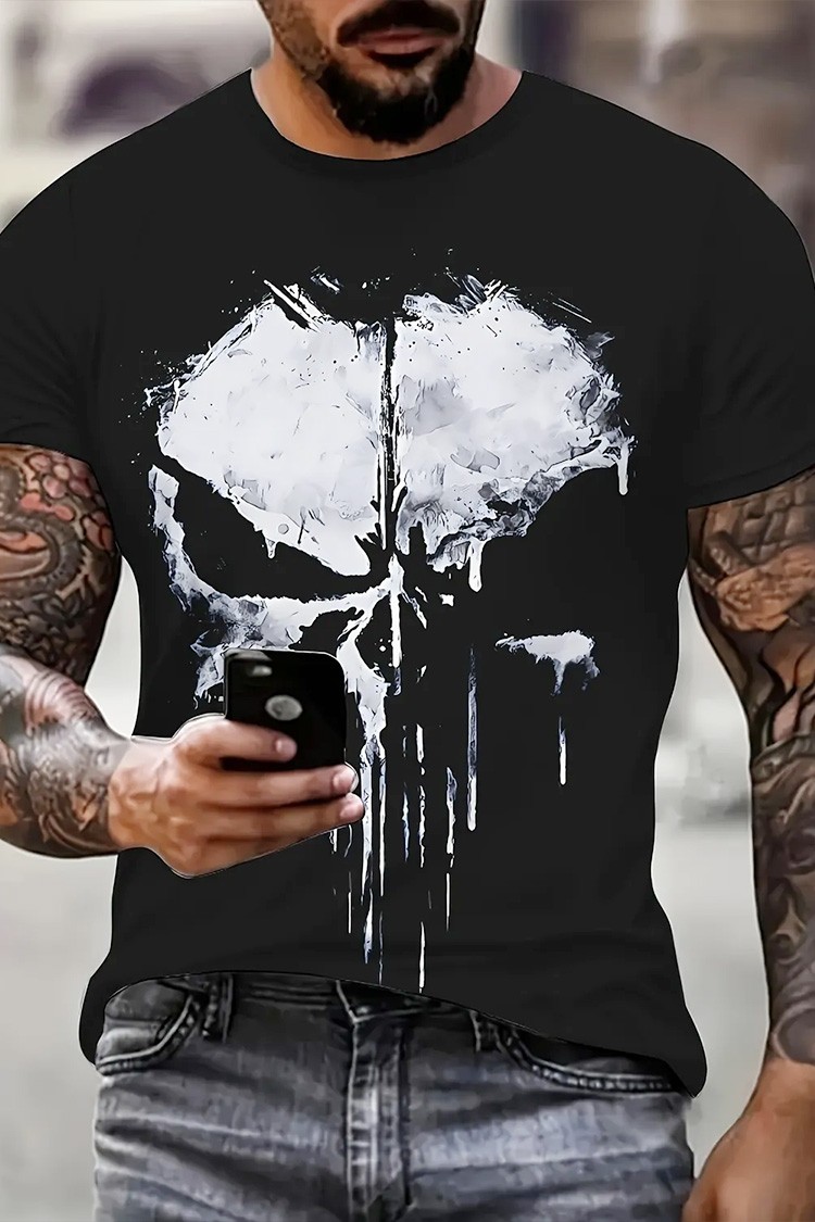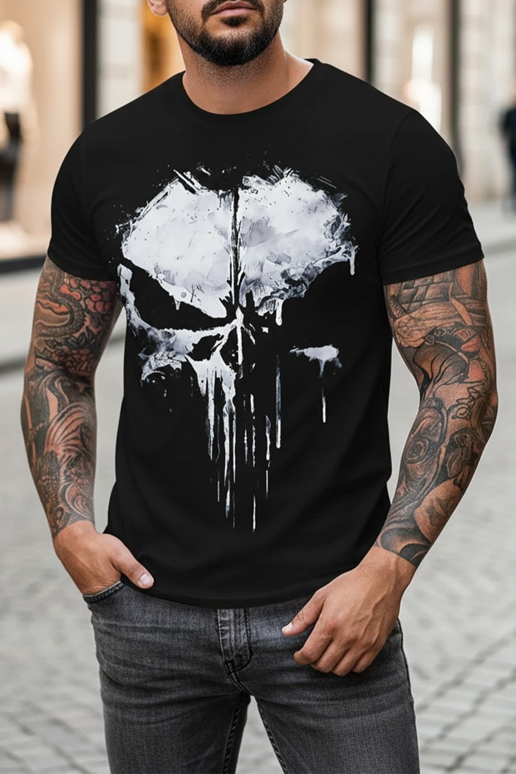 - Praktična muška majica s udobnim krojem i printom lubanje, prikladna za svakodnevni život, šetnju ili kao dodatak vašem sportskom izgledu.