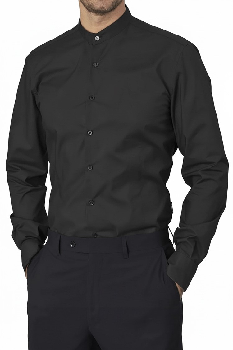 - Elegantna muška košulja klasične crne boje, prikladna za svakodnevne i svečane prigode.