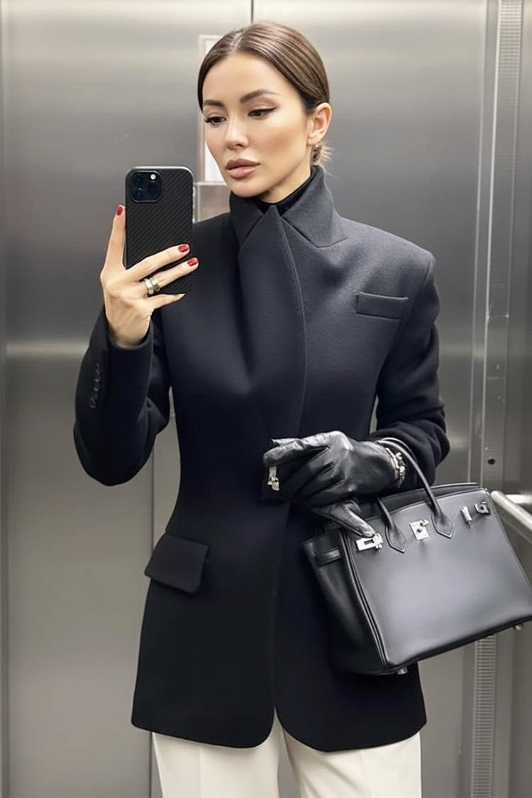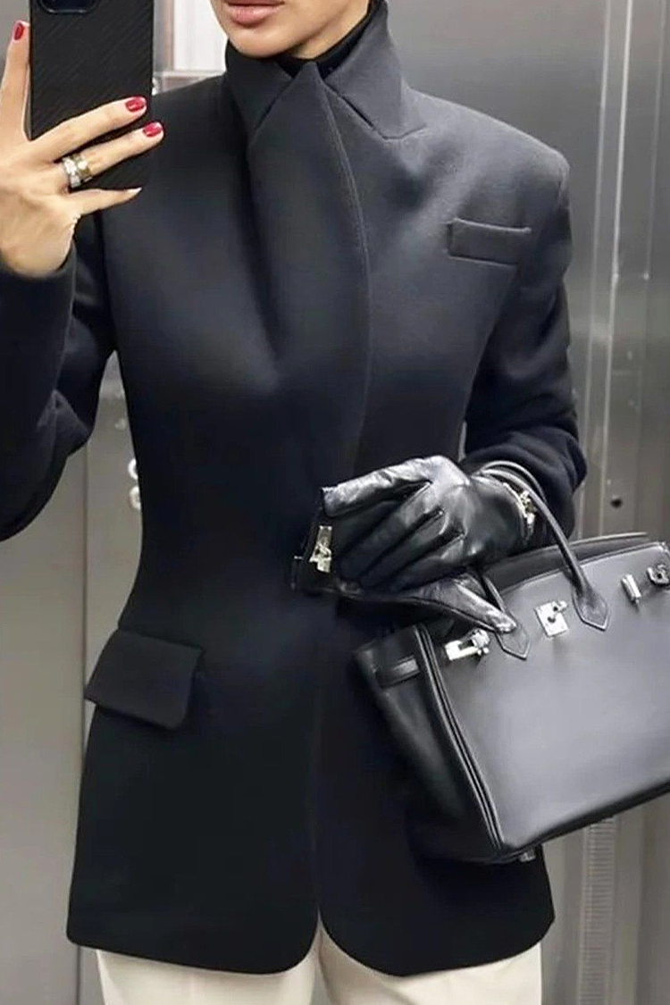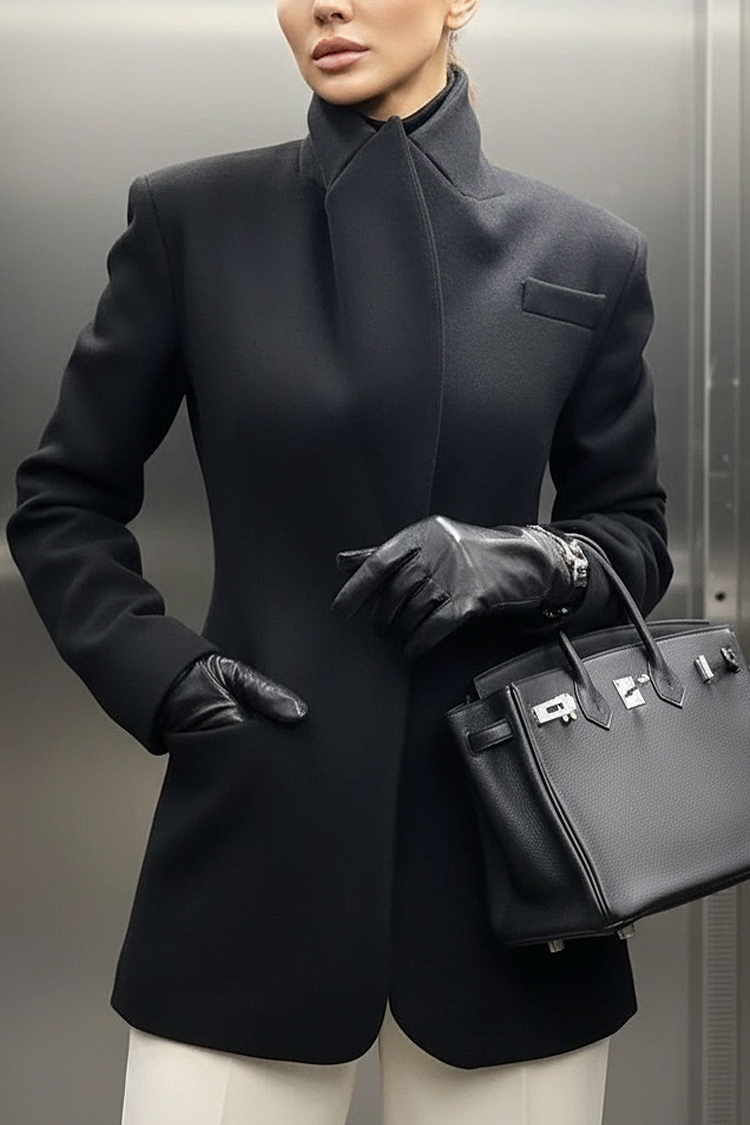- Model ima elegantan, pripijeni kroj, upotpunjen ukrasnim džepovima i skrivenim unutarnjim kopčanjem na gumbe.