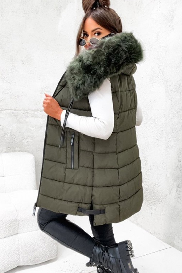 - Prsluk ima klasičan kroj, udobnu kapuljaču s pahuljicama i dugu duljinu.