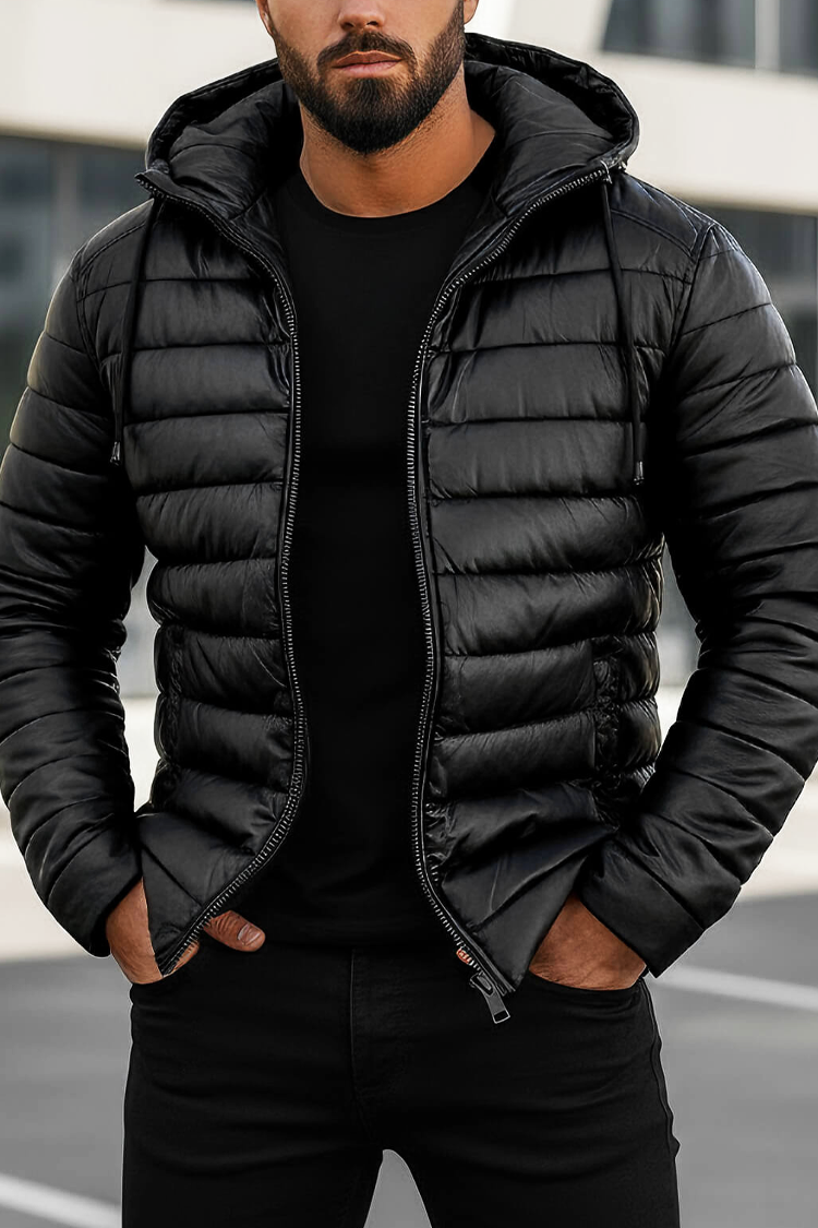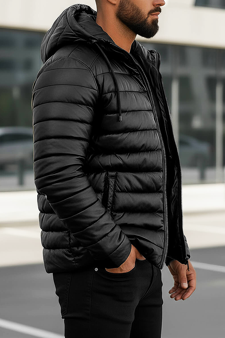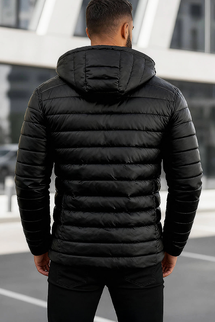 - Praktična muška jakna s prošivenim dizajnom u crnoj boji i kapuljačom sportsko-svakodnevnog stila.