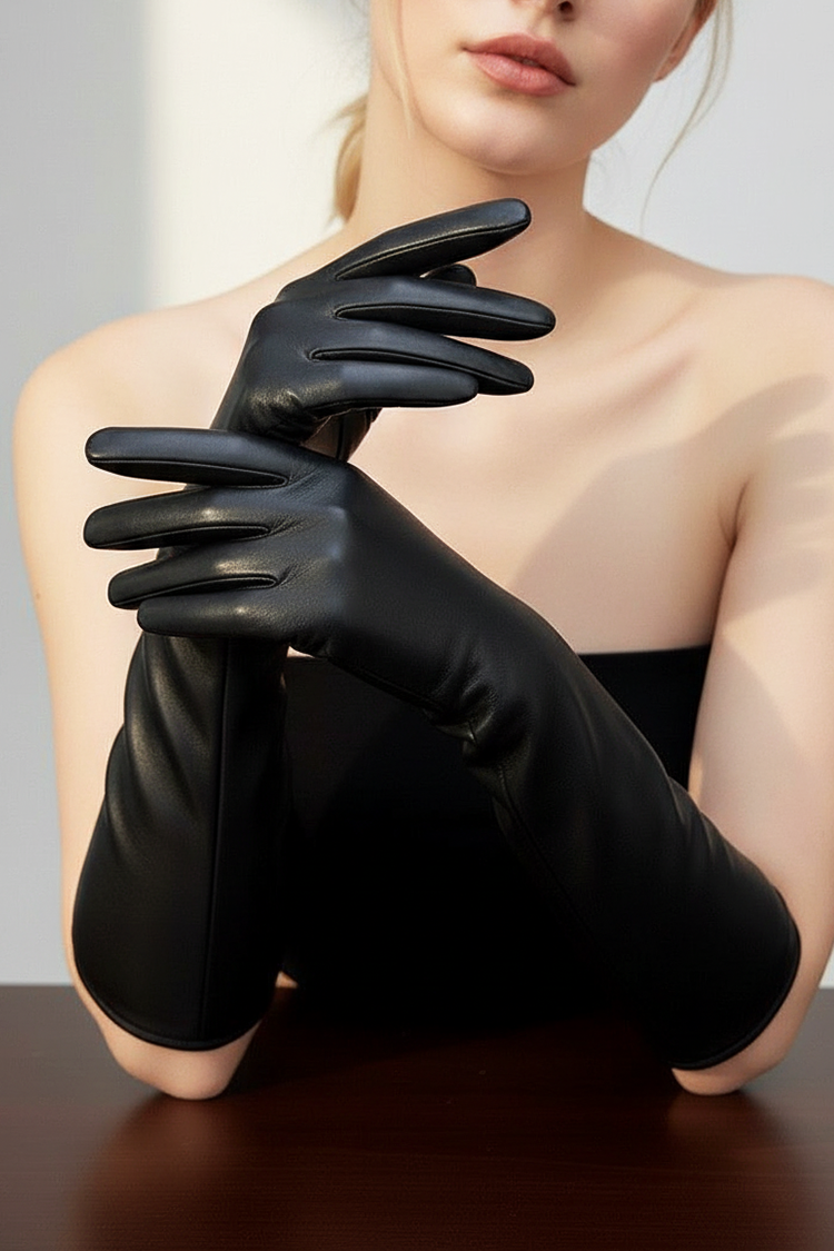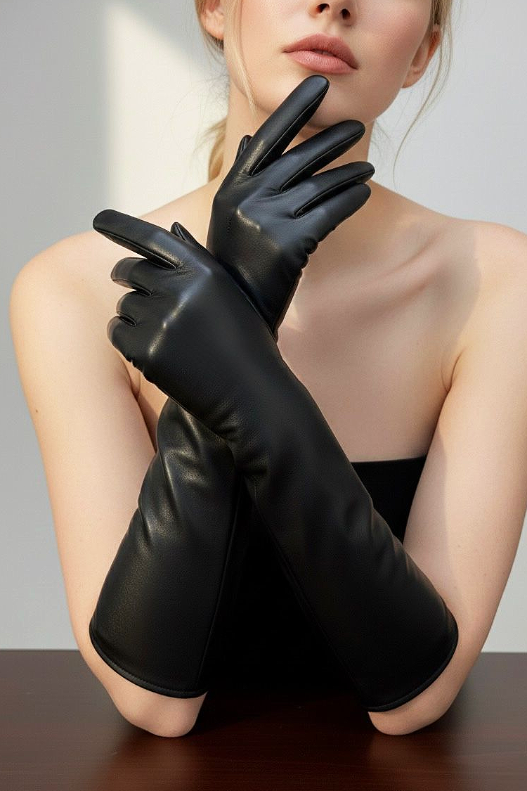 - Stvorite impresivan modni izgled s dugim ženskim rukavicama od eko kože.