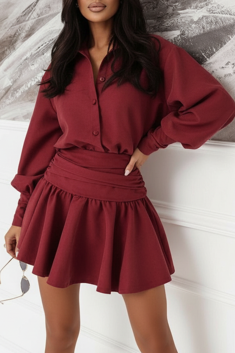 - Model ima udoban kroj, nabore u struku i gumbe sprijeda.