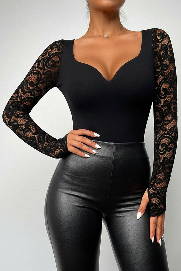 - Model ima pripijeni kroj, seksi duge rukave s čipkom i atraktivan dekolte.