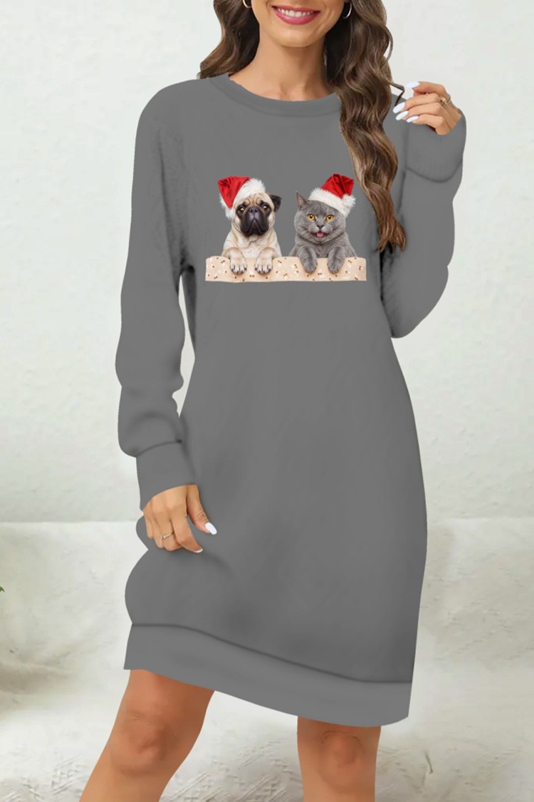 - Haljina ima udoban i širok kroj, duge rukave i božićni print.