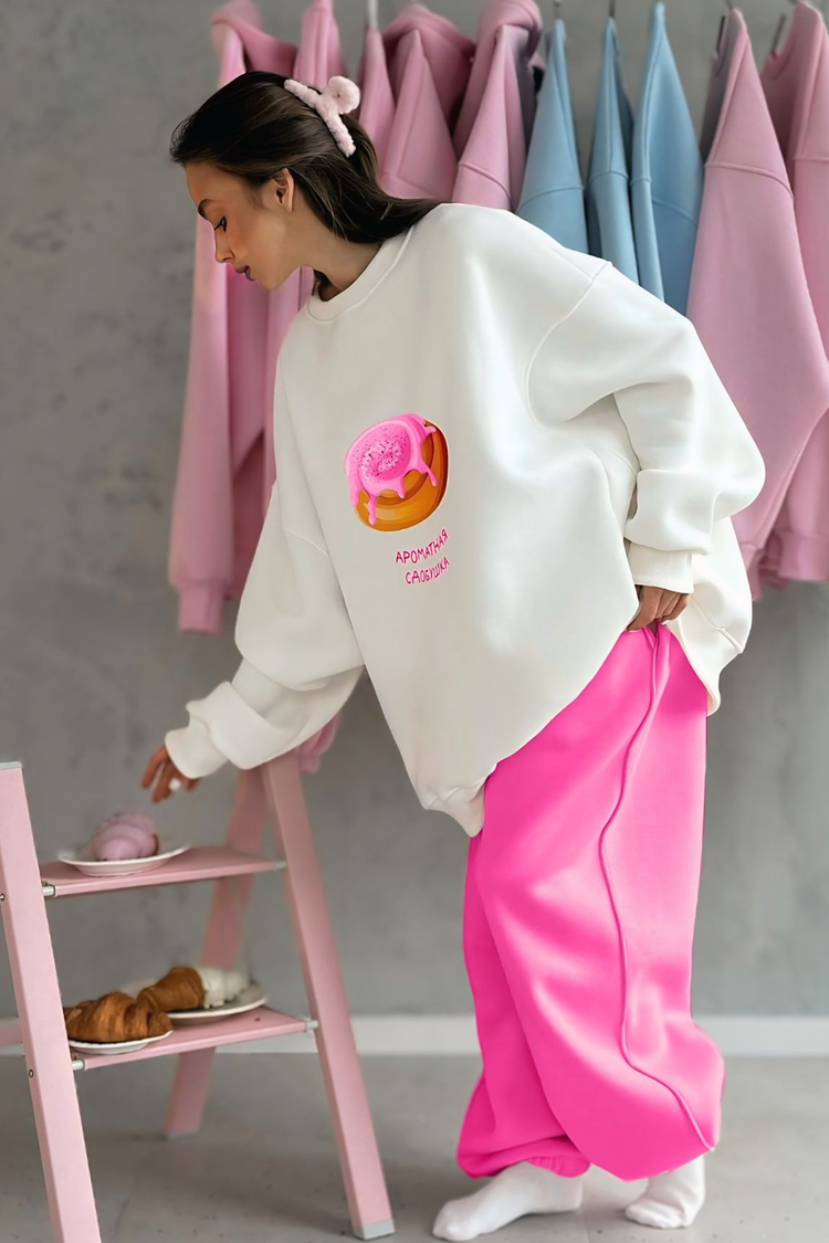 - Set se sastoji od predimenzionirane bluze s atraktivnim printom, u kombinaciji s hlačama širokog i udobnog kroja.