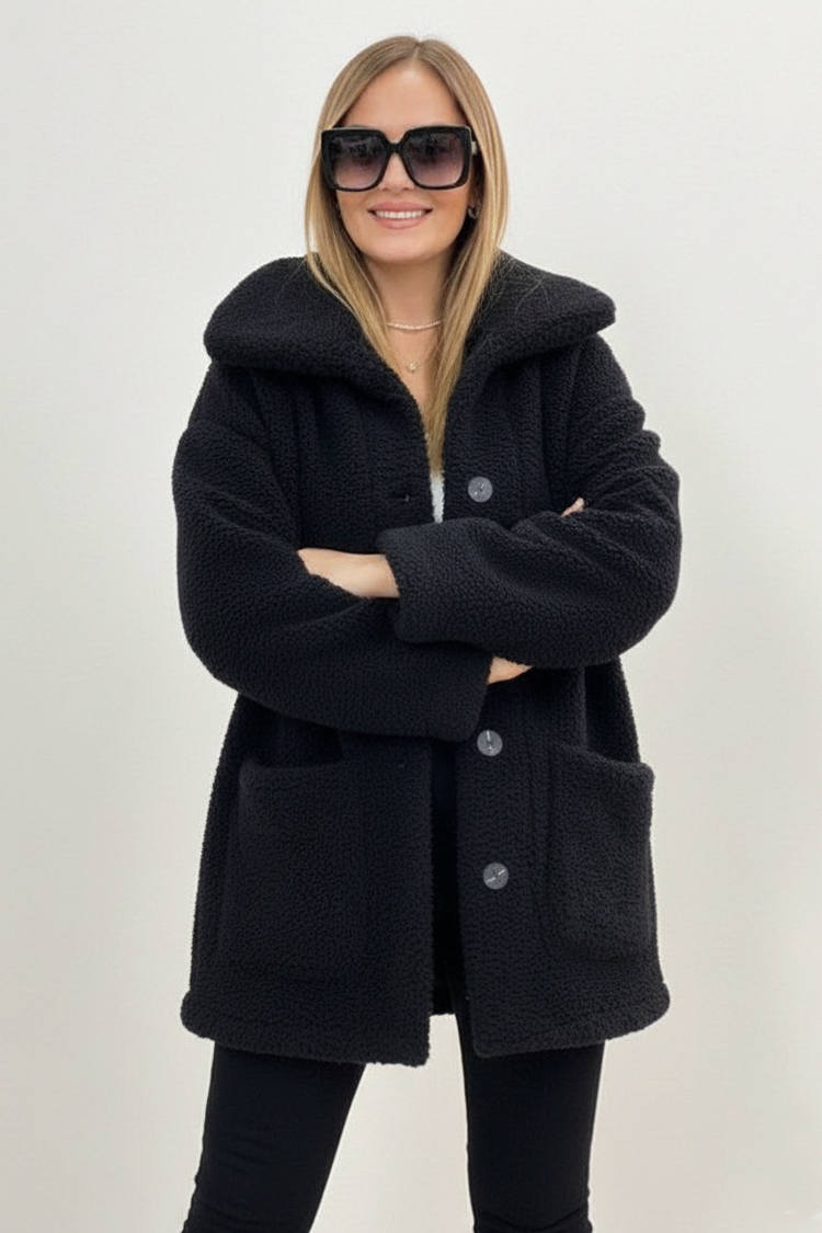 - Model ima klasičan dizajn, praktične džepove, voluminozni ovratnik i gumbe sprijeda.