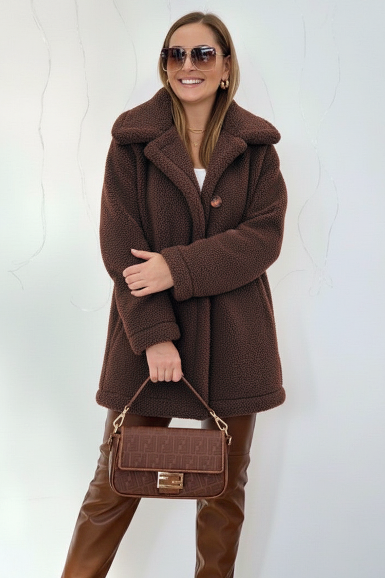 - Model ima klasičan dizajn, praktične džepove, voluminozni ovratnik i gumbe sprijeda.