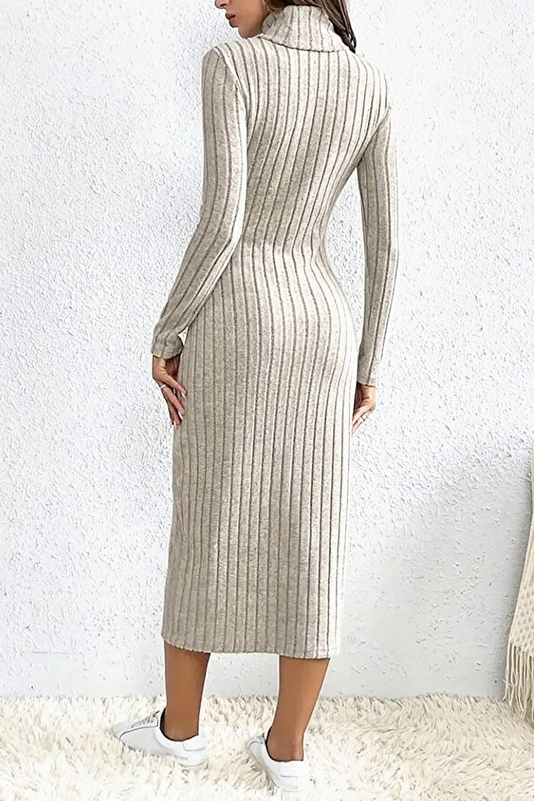 - Haljina ima pripijeni kroj, duge rukave i jednostavan dizajn.