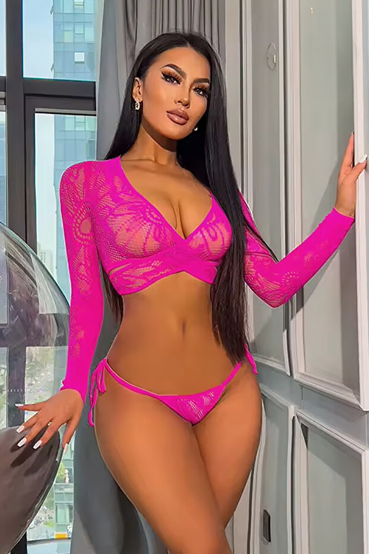 - Erotski set donjeg rublja od dva dijela - top s dugim rukavima i tange s atraktivnim dizajnom.