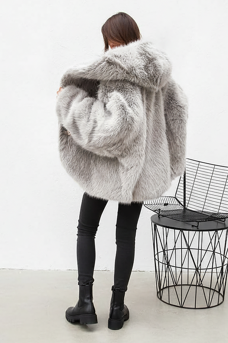 - Model ima jednobojni uzorak, eko krzno i nevjerojatan volumen.
