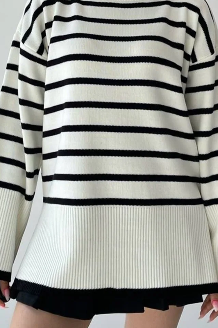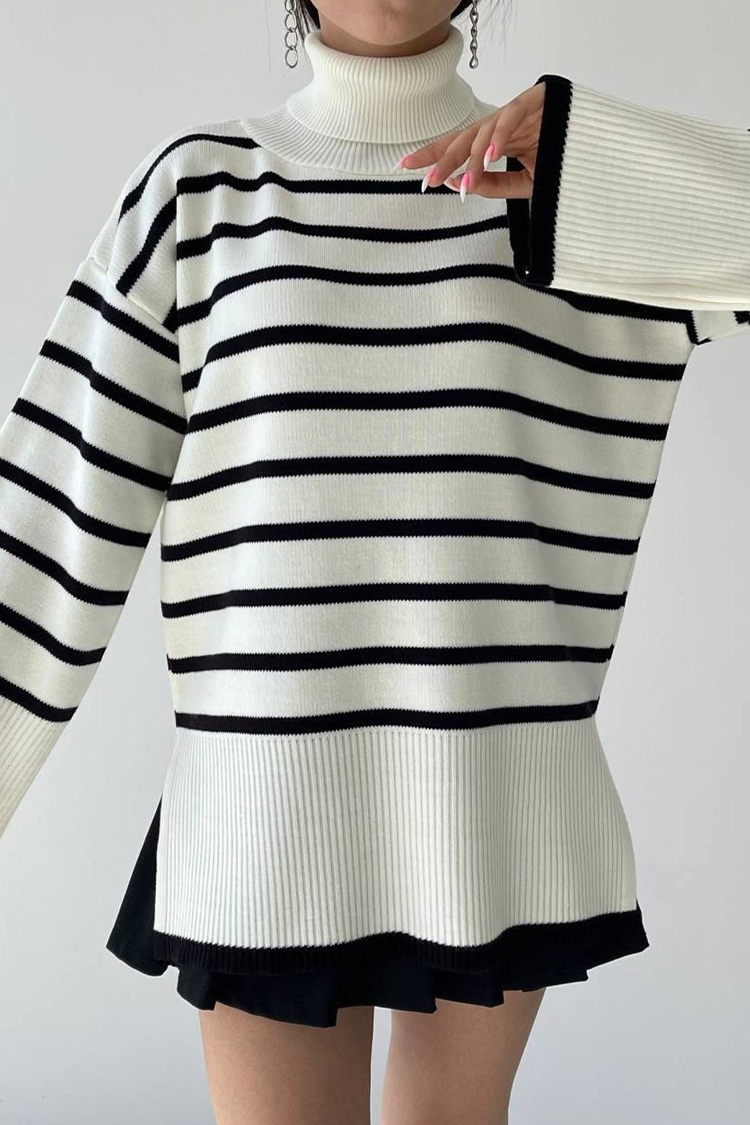 - Praktični džemper s prugastim uzorkom, pogodan za razne zimske izglede.