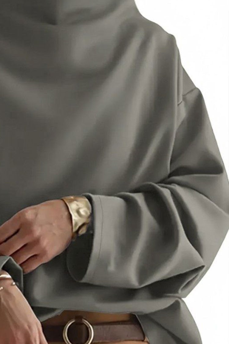 - Bluza ima duge rukave, elegantan predimenzionirani kroj i moderan polo ovratnik.