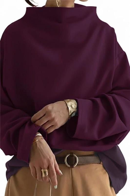 - Bluza ima duge rukave, elegantan predimenzionirani kroj i moderan polo ovratnik.