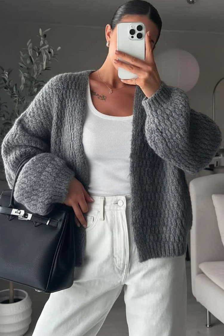- Elegantni ženski kardigan s jednobojnim uzorkom, prikladan za svakodnevne trendi izglede.
