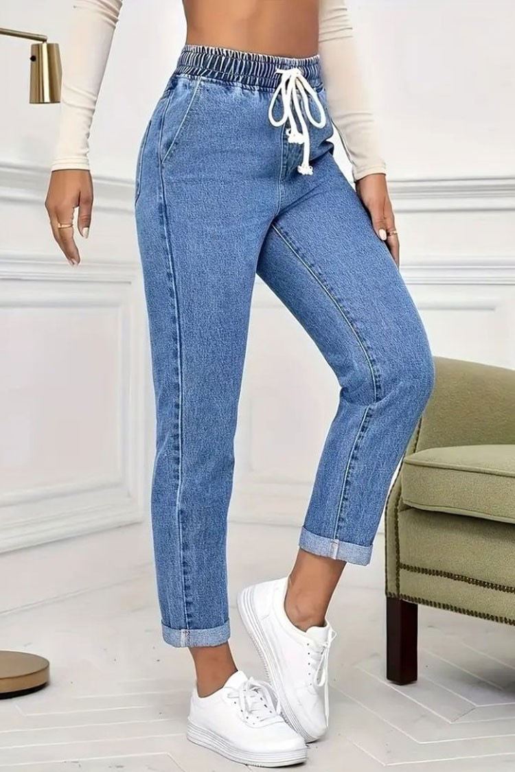 - Model ima visoki, elastični struk s vezicama, čist dizajn i praktične džepove.