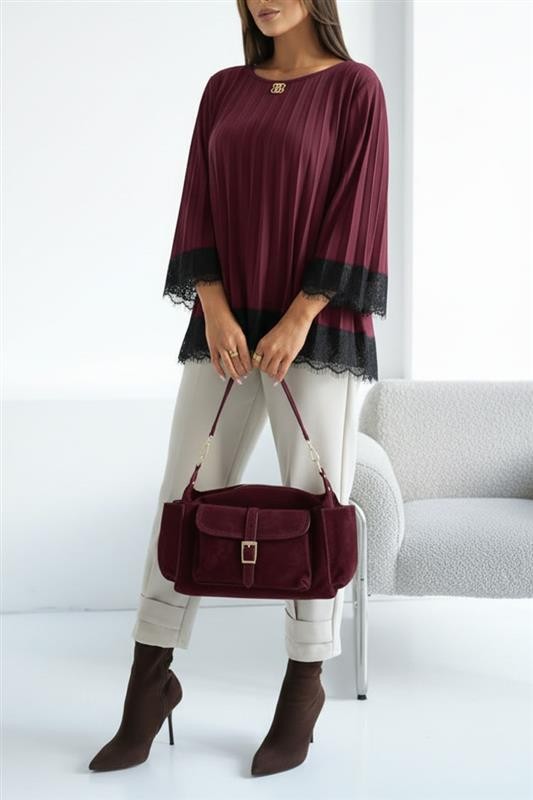 - Model ima elegantan kroj, jednobojni uzorak, plisirani dizajn i čipku.