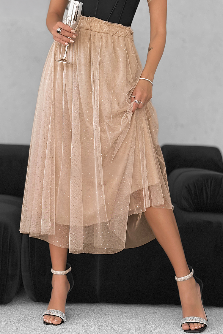 - Model ima visoki struk i sjajne, ukrasne elemente.