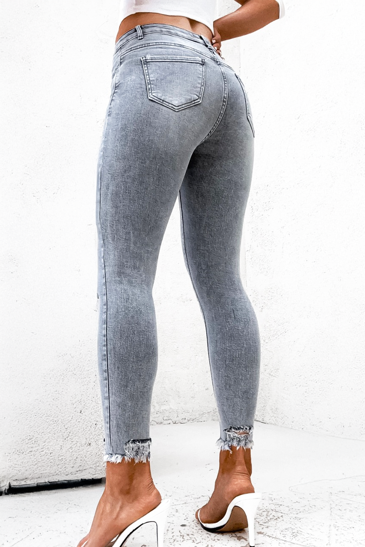 - Model ima visoki struk i precizan kroj te moderan izblijedjeli efekt.