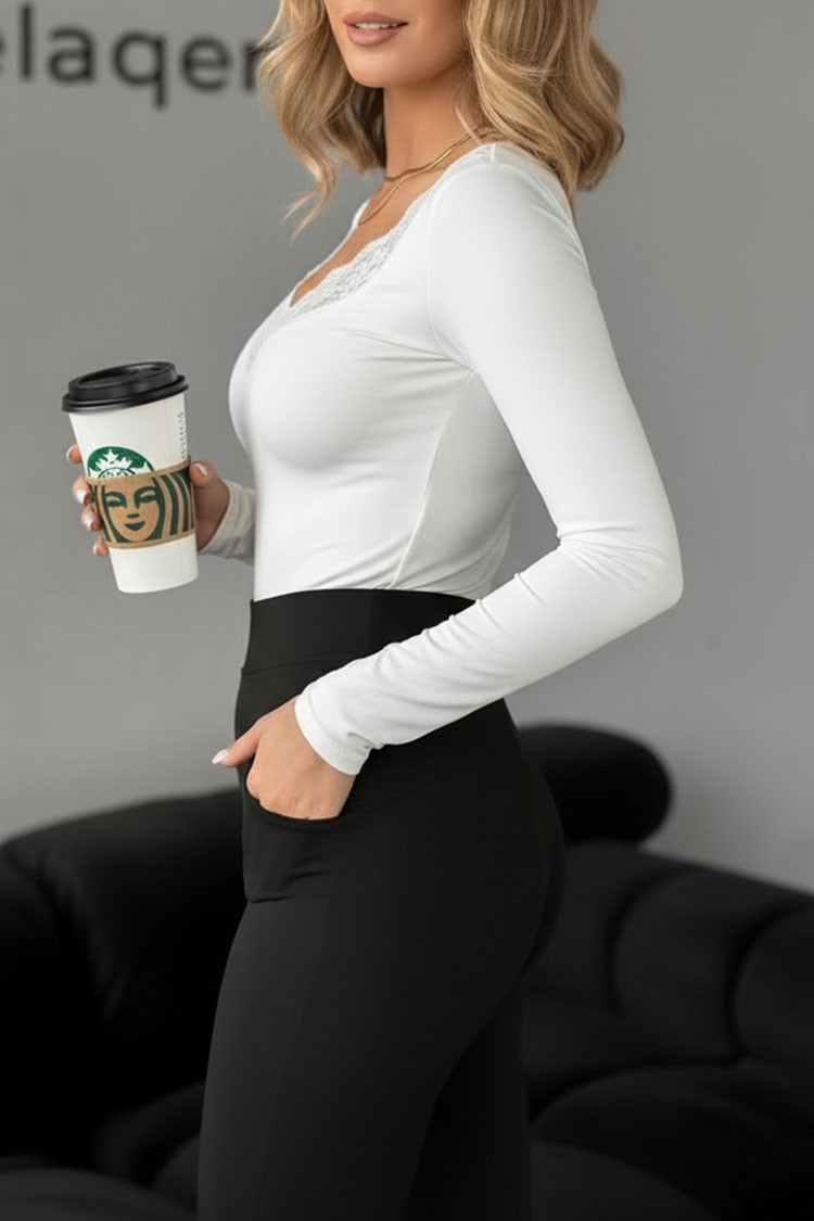 - Model ima klasičan kroj i nježnu čipku na dekolteu.