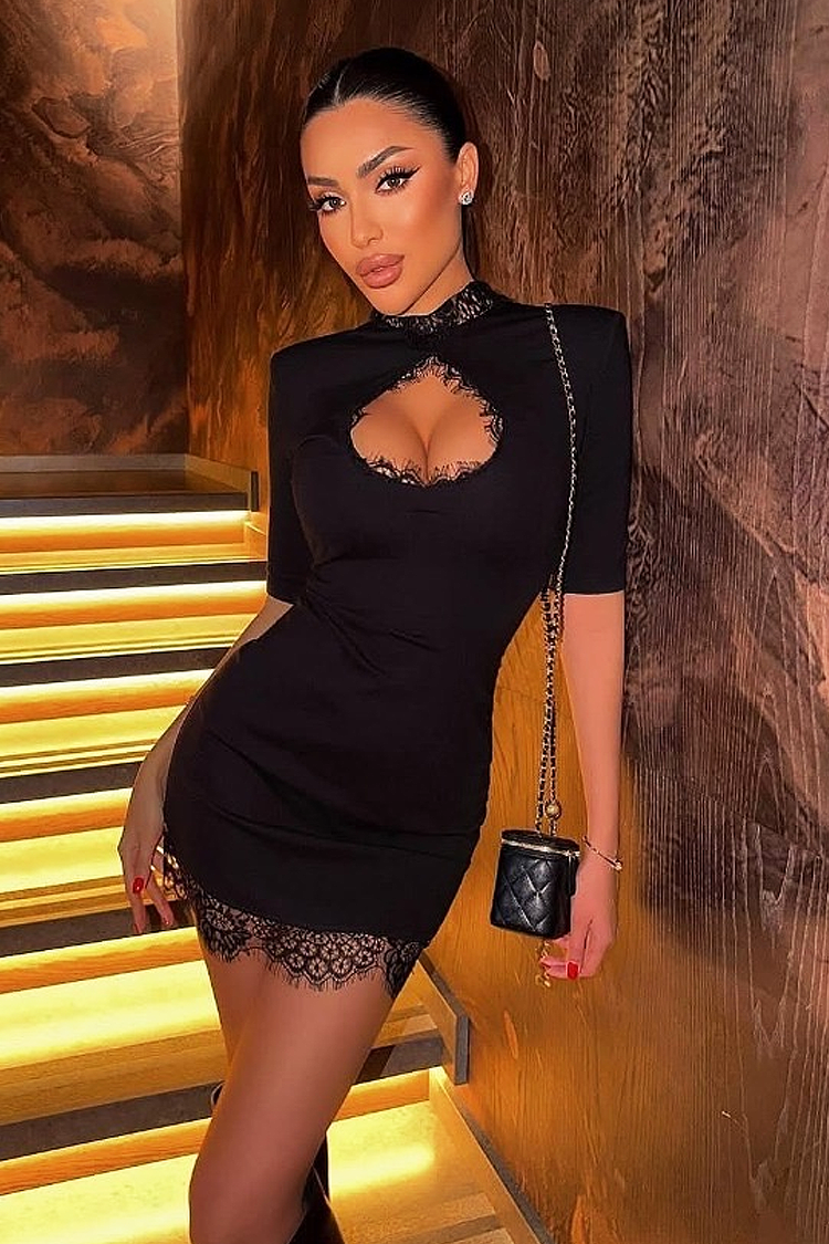 - Model ima spektakularan izrez, kratke rukave i detalje od čipke.
