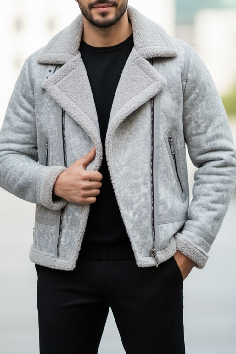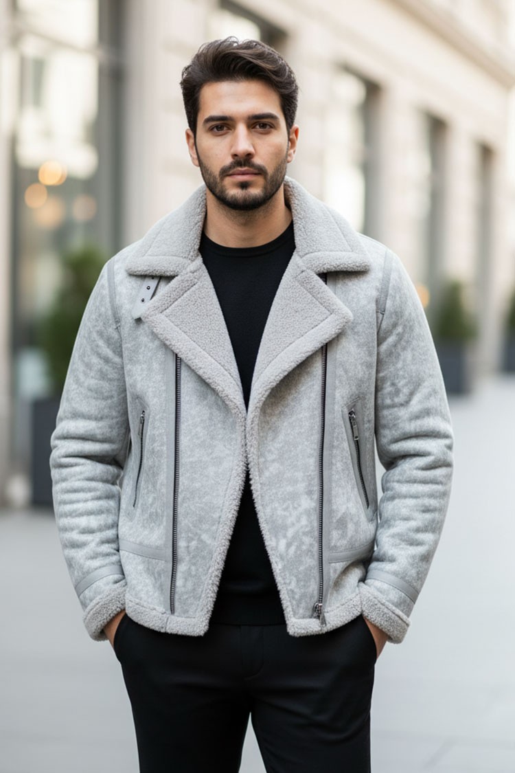 - Muška jakna atraktivnog dizajna s mekanim ovratnikom za stil i udobnost u hladnijim danima.