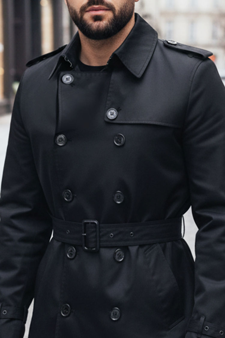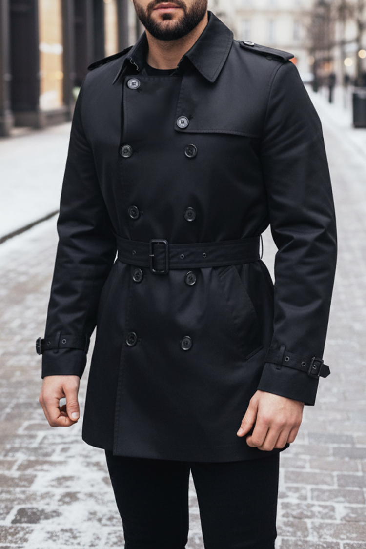 - Elegantni kaput s ovratnikom i remenom u crnoj boji koji je obavezan dio vašeg ormara.