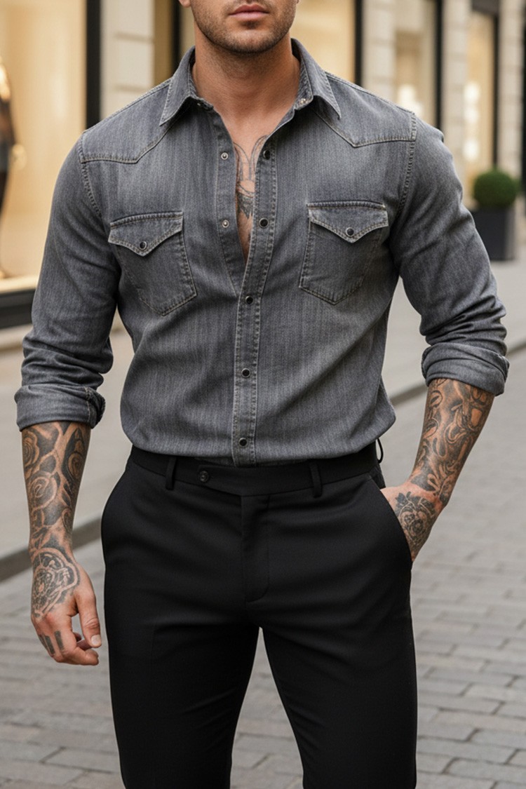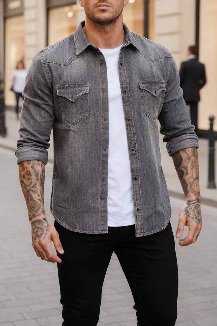 - Praktična muška košulja čistog dizajna, džepova s preklopom i tic tac kopčanjem, prikladna za razne modne kombinacije.