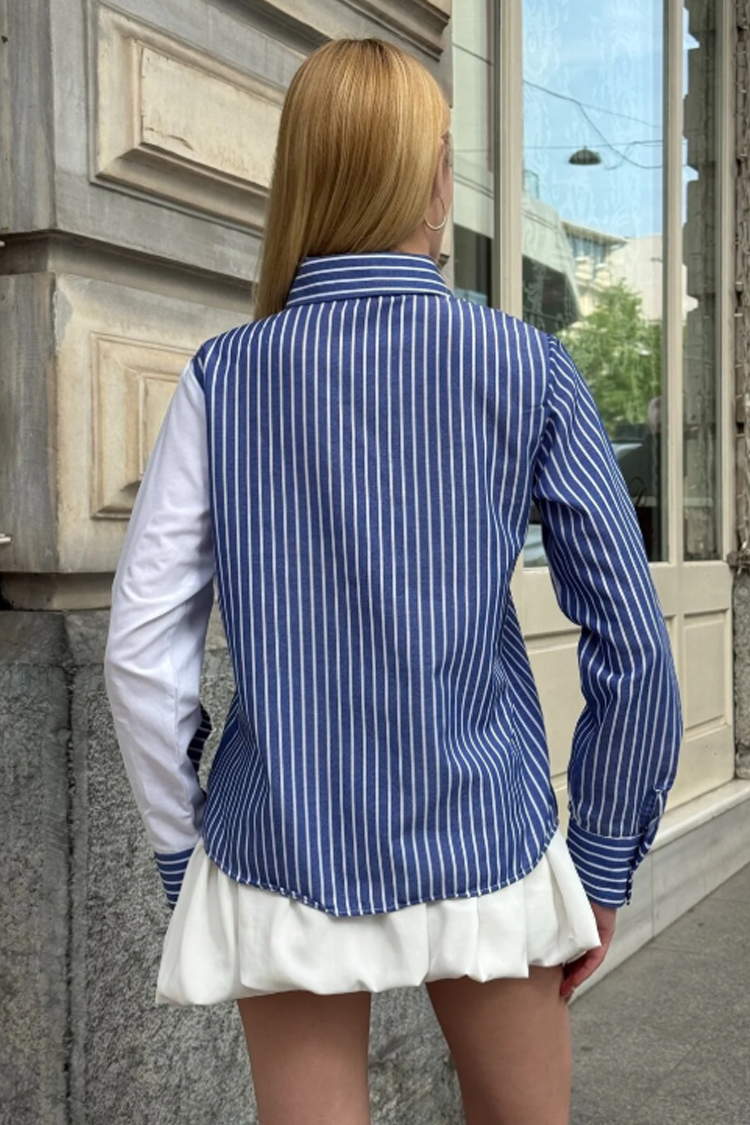 - Model ima spektakularan kroj, ovratnik, dvobojni uzorak i pruge.