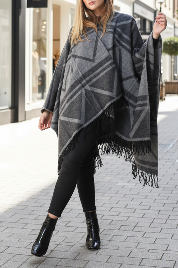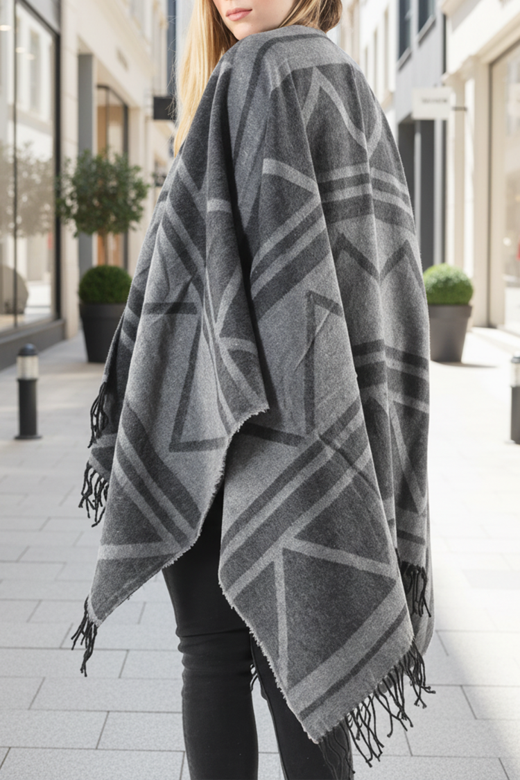 - Mekan i topao ženski pončo slobodnog kroja, prikladan za svakodnevni život.