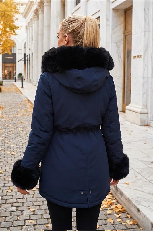 - Model ima elastični struk s podesivim vezicama, praktičnu kapuljaču i bočne džepove.