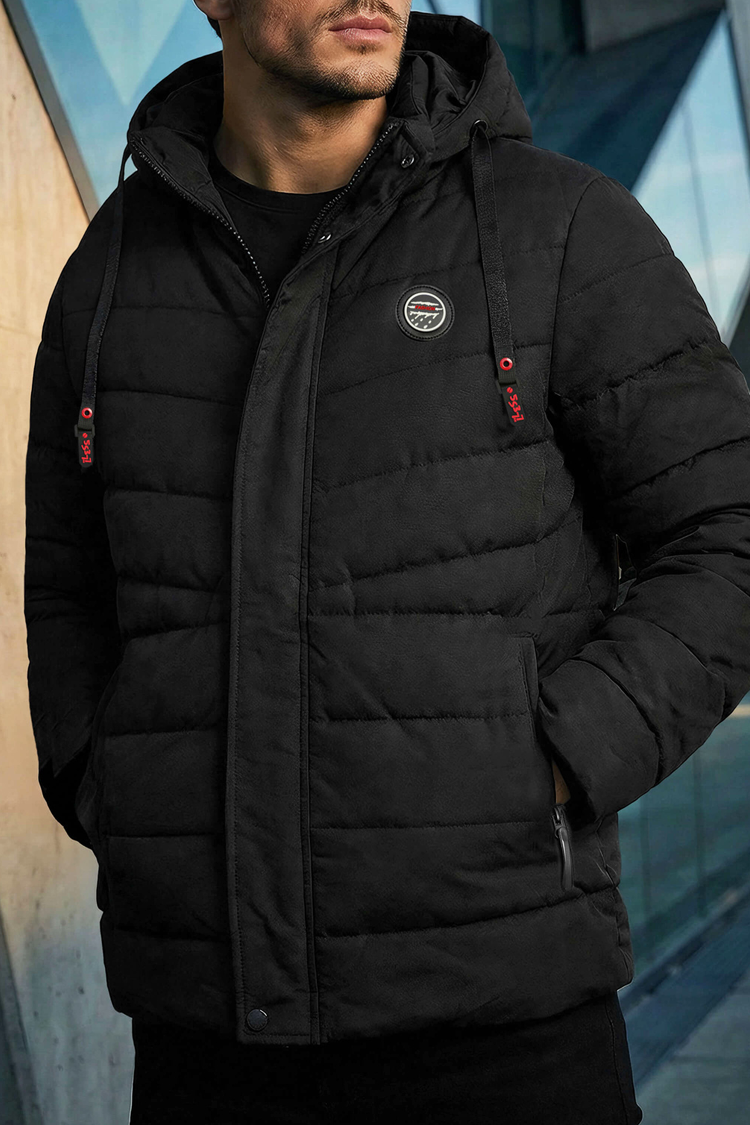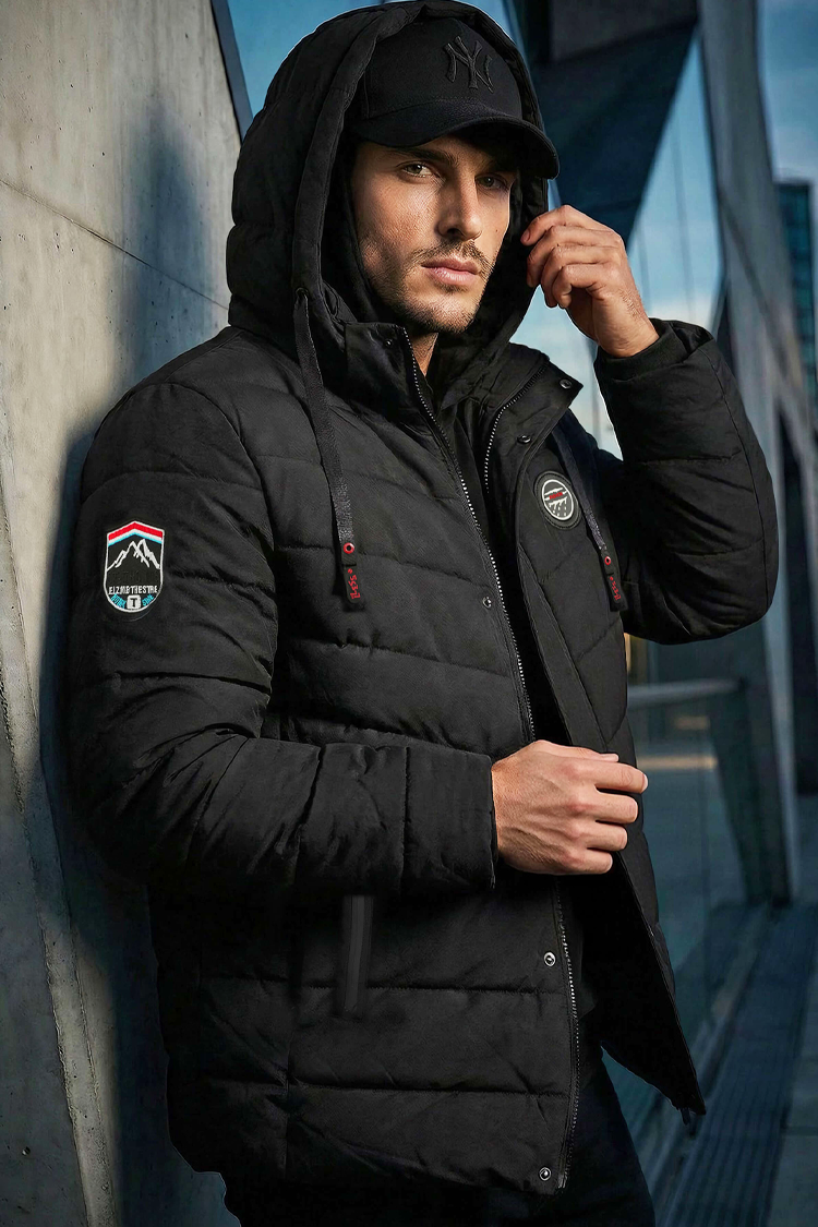 - Praktična i topla muška jakna s logotipom na prednjoj strani i rukavu, džepovima i fiksnom kapuljačom s podesivim vezicama u crnoj boji.